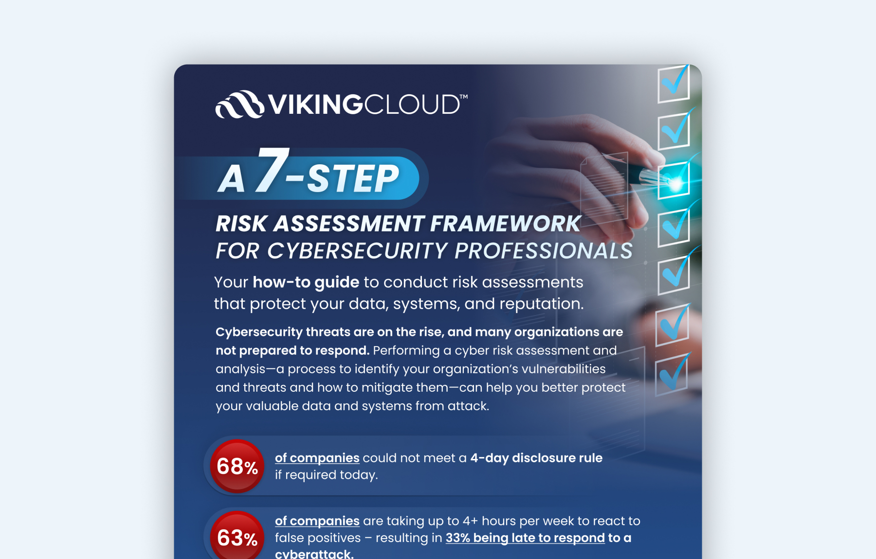 VikingCloud's 7-Step Risk Assessment Framework for Cybersecurity Professionals is a how-to-guide for conducting risk assessments that protect an organizations data systems and reputation.