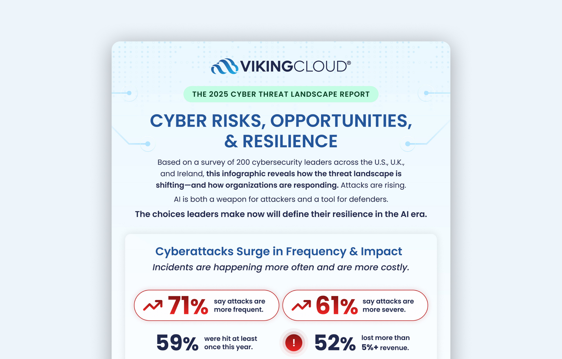 For more details about VikingCloud's 2025 Cyber Threat Landscape Report, download the report The 2025 Cyber Threat Landscape Report: Cyber Risks, Opportunities, & Resilience or read our blog Outpaced and Underprepared: The Reality of Cybersecurity in 2025.